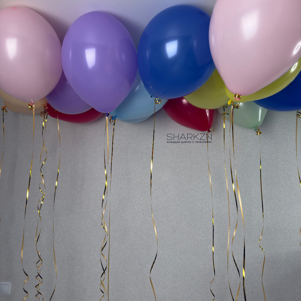 - Под потолок 15 стандартных разноцветных шаров 30 см