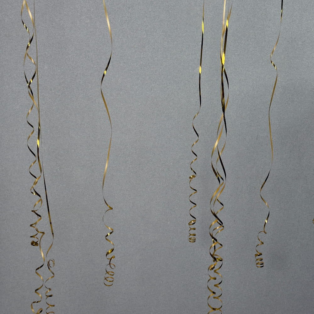 Пятнадцать ярких шаров, парящих под потолком, — это уже само по себе зрелище. А золотые металлизированные ленты делают эту композицию еще более нарядной и завершенной, связывая разноцветные шары в единое гармоничное целое. Золотые акценты добавляют яркой палитре праздничного шика.
