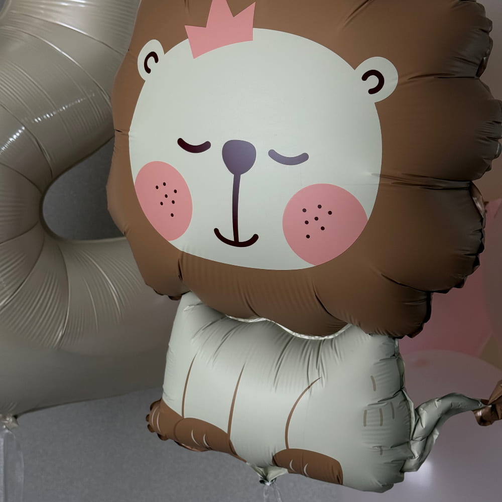 Цвет цифры и Львёнка может быть любым. Цветовую гамму шаров тоже легко изменить. Пусть ваша принцесса почувствует себя настоящей королевой в свой день рождения.