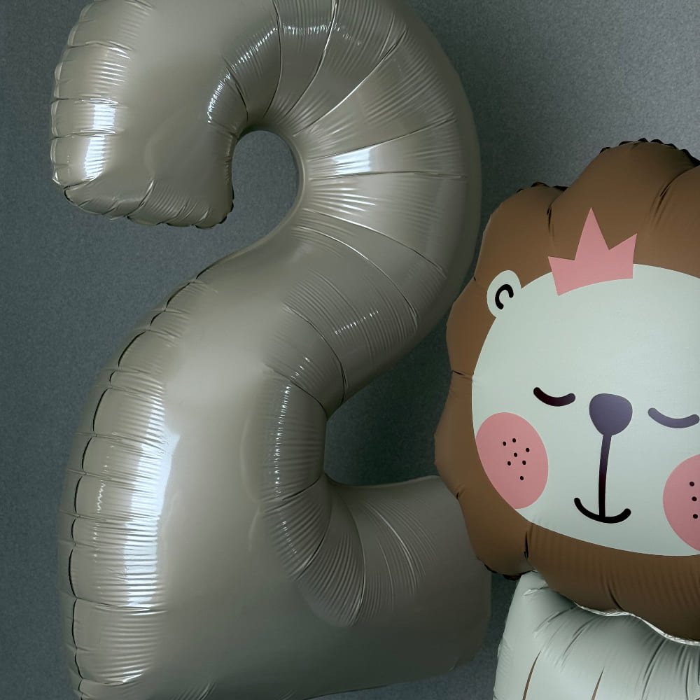 В центре композиции — милый фольгированный Львёнок, который станет символом храбрости для вашей дочки. Рядом с ним — элегантная кремовая цифра 2. А вокруг них мы создаем пышную связку из 10 ярких шаров, которая создает ощущение настоящего праздника и веселья. Львёнок и цифра из качественной фольги будут радовать малышку еще много дней.