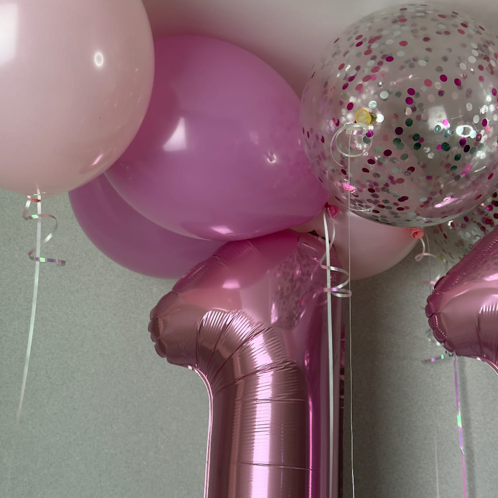 Цифры могут быть любого модного оттенка — мятные, сиреневые, коралловые. Цветовую гамму шаров под потолком тоже легко изменить. Подарите дочери тот самый праздник, о котором она мечтает.