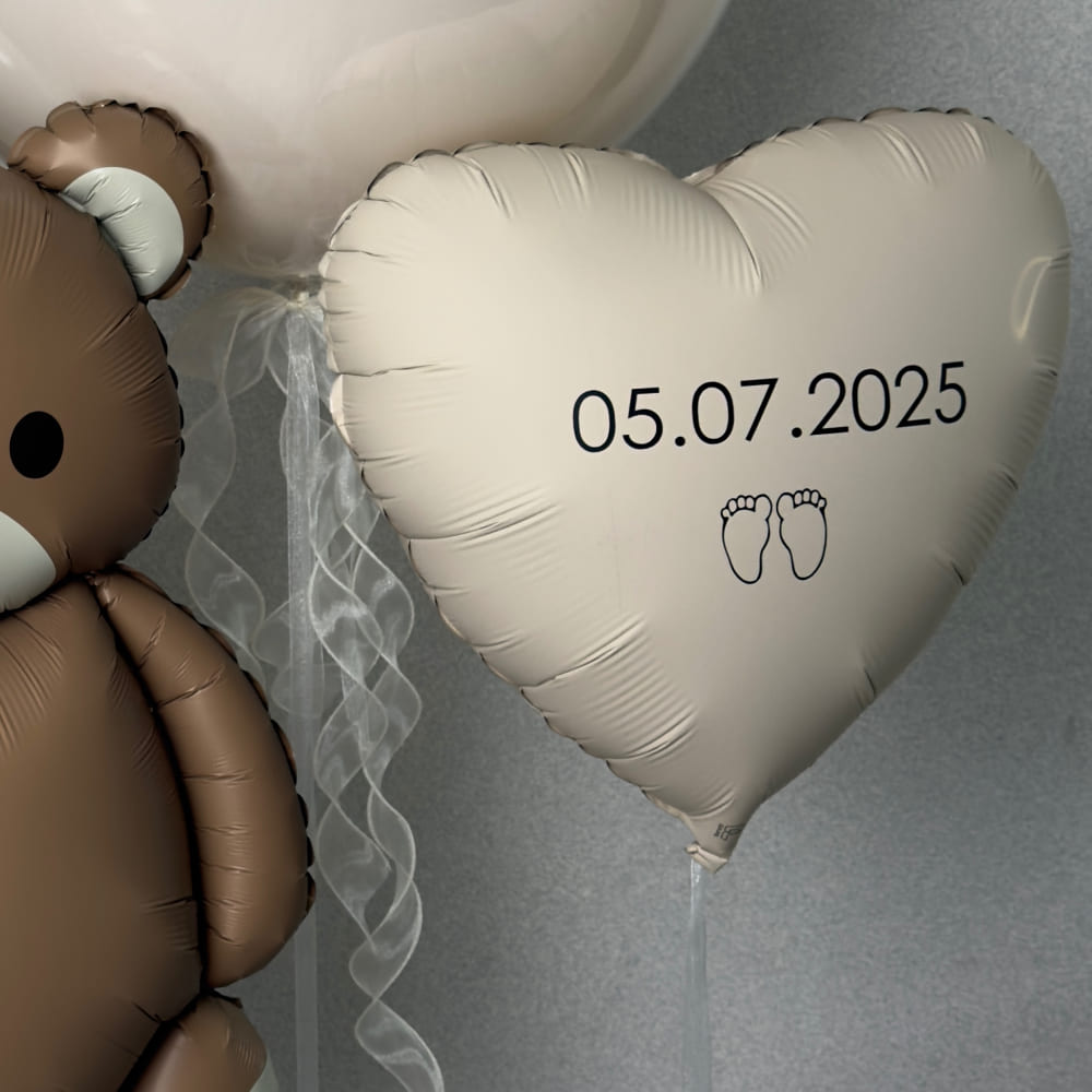 - Сердце 18 дюйма с надписью: Дата рождения и Картинка стопа малыша
