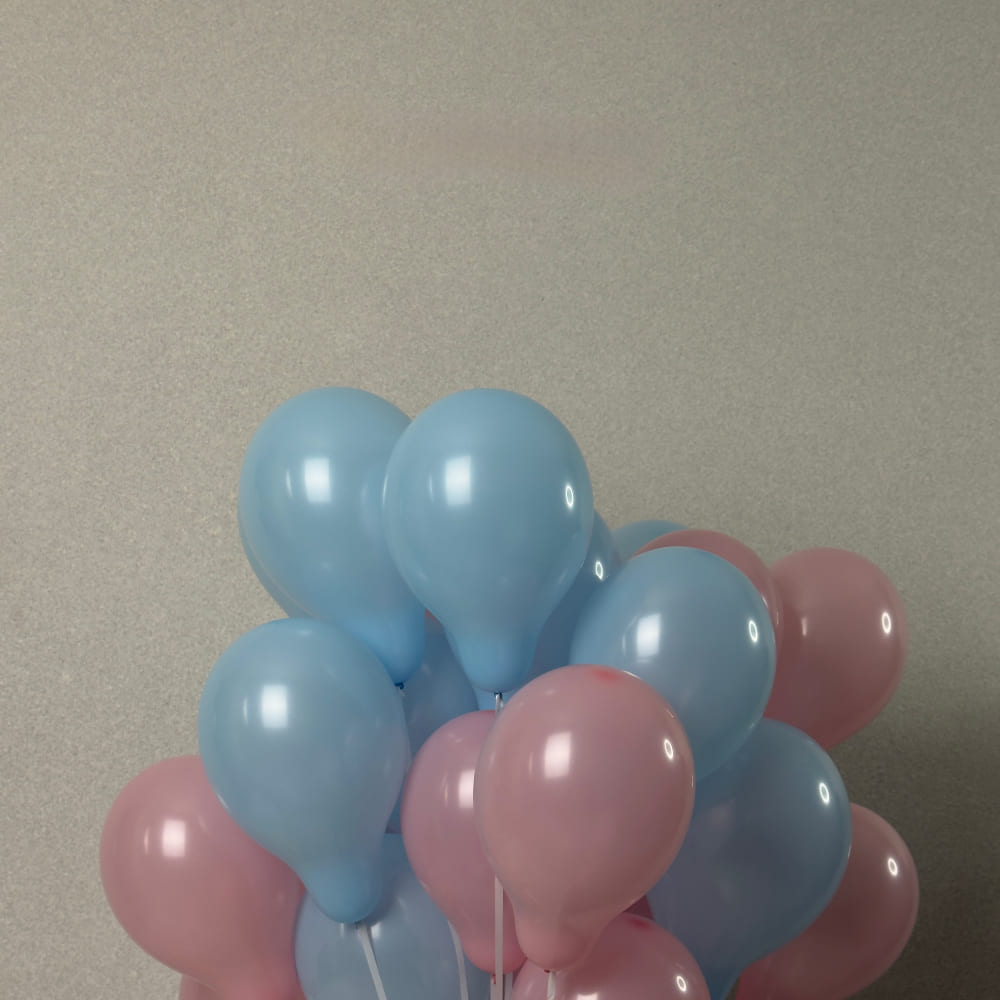 Эффектный момент открытия: шары взлетают вверх, показывая пол малыша (розовый или голубой). Идеально для гендер-пати.