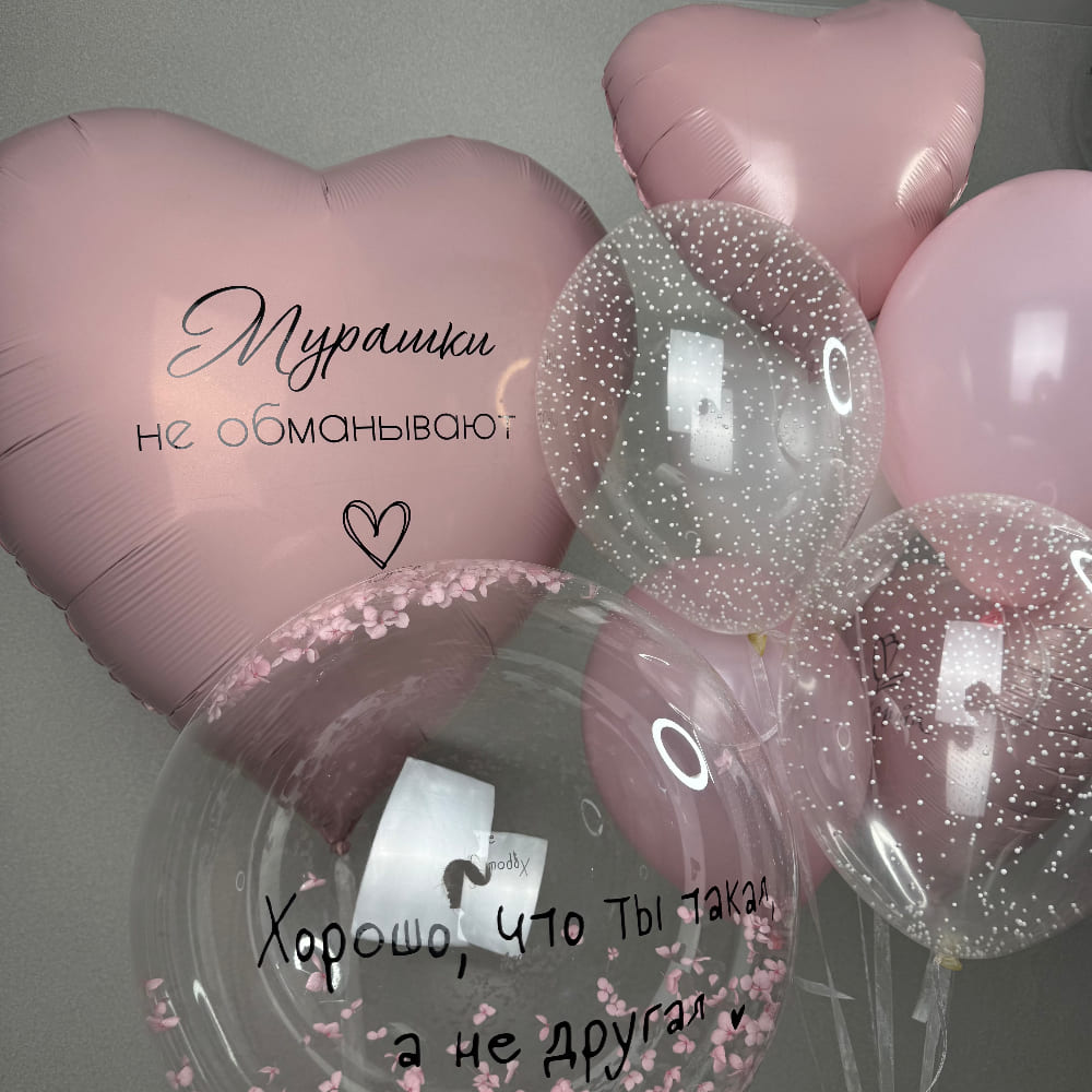 Почему это лучший выбор? Потому что он уникален, как и ваша любовь. В эту композицию мы вложили дизайнерский подход и внимание к каждой детали. Это не просто шары, а заявление о том, как вы ее видите и цените. Все материалы — только премиального качества.