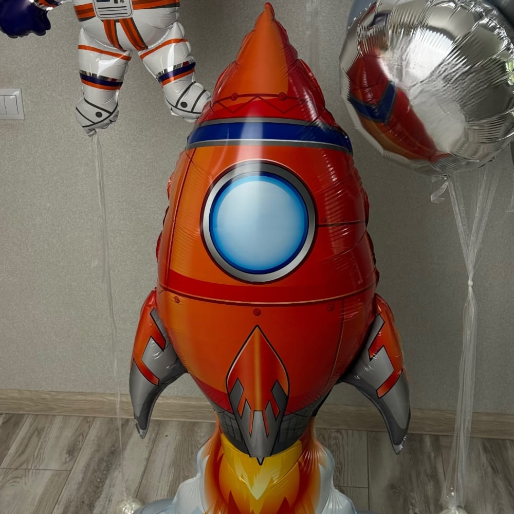 Круглые шарики 30 см, Фольгированный космонавт 92 см, Фигура ракета 80 см, Фольга круги 46 см, Ракета Ходяка 126 см