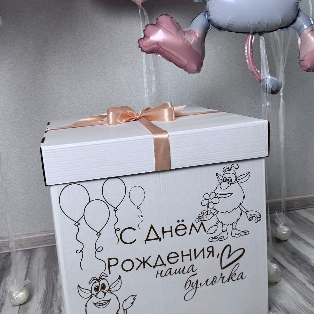 - Коробка 60*60*60см, бант и индивидуальная надпись-рисунок на коробку