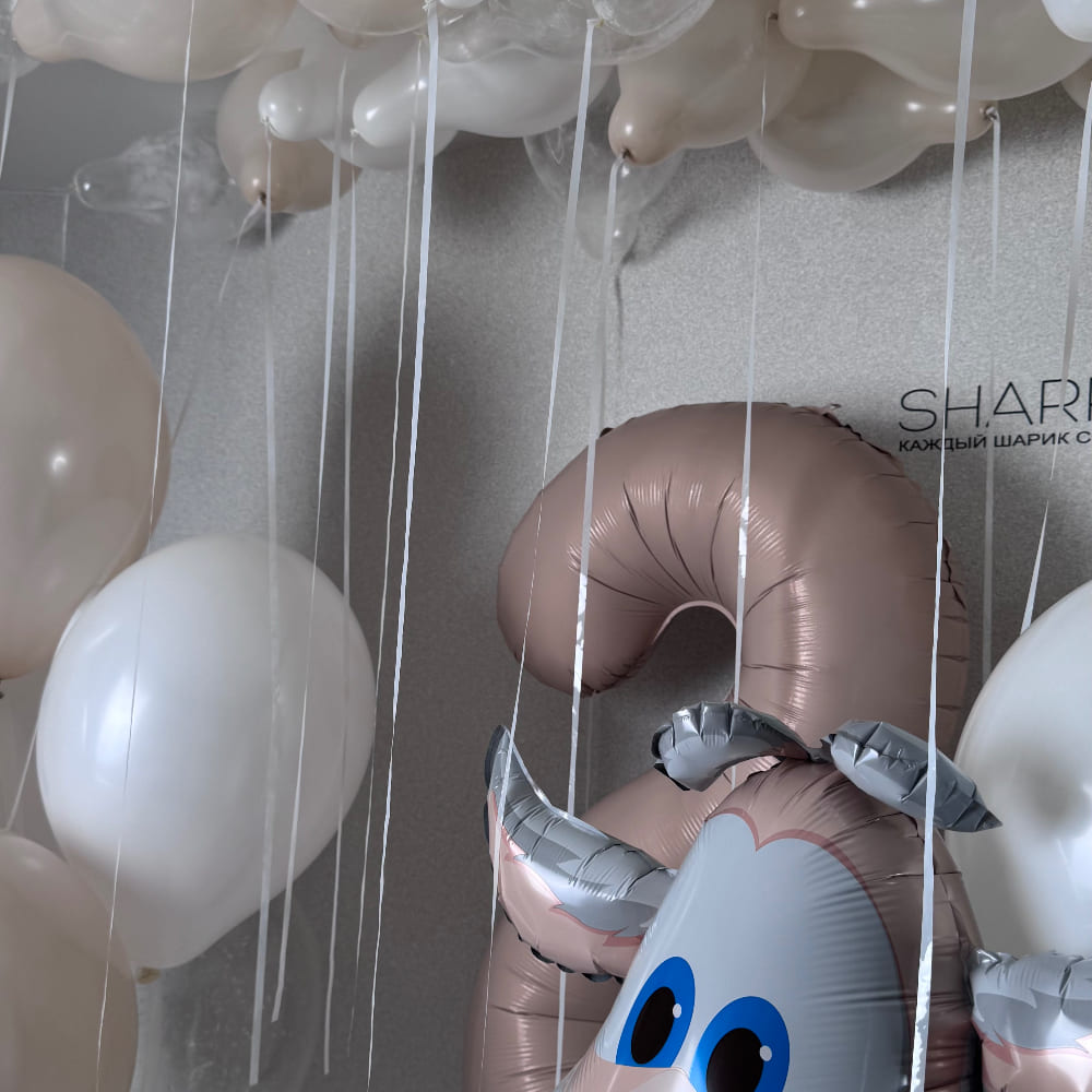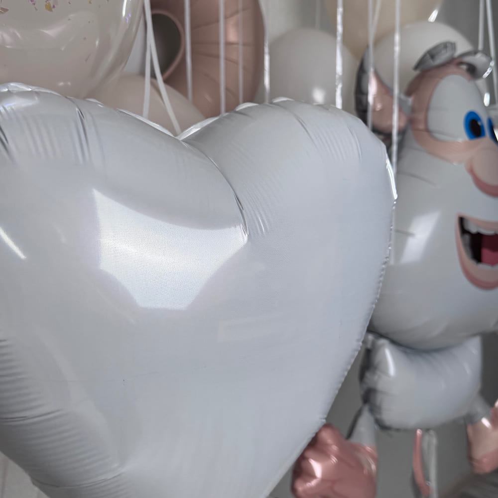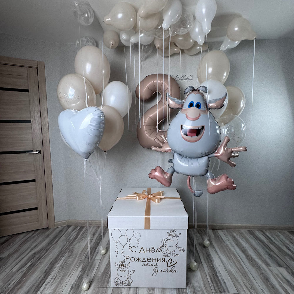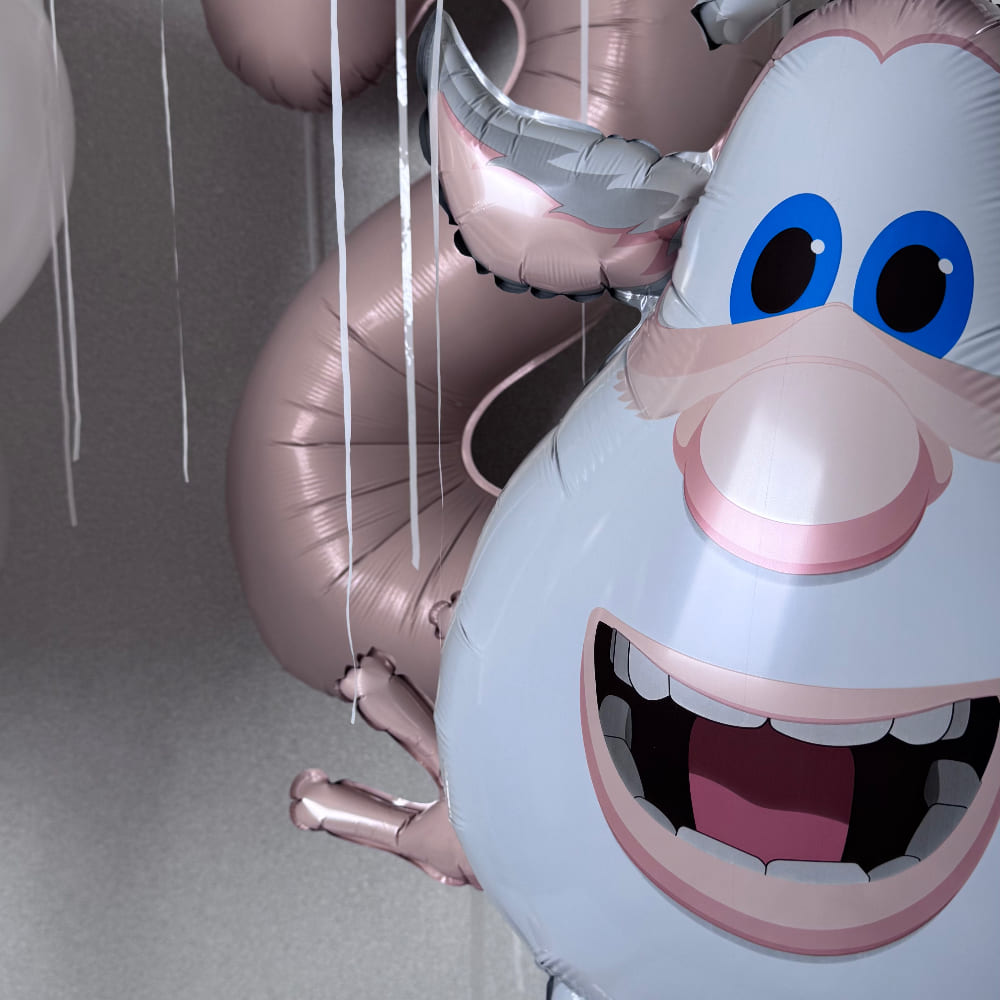 | Размер | Круглые шарики 30 см и 15 см, Фольгированный Буба 86 см, Цифра 102 см, Сердца 46 см |