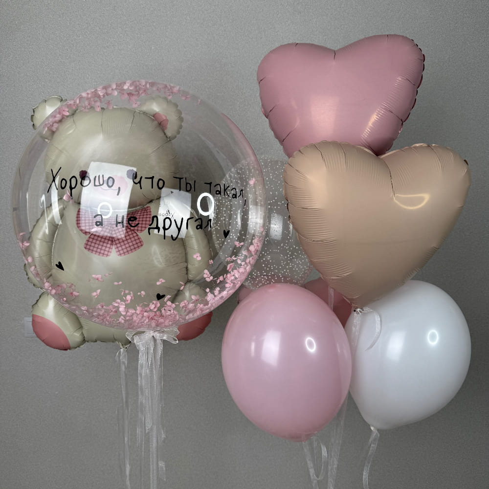 Мечтаете создать для любимой атмосферу настоящей сказки? Нежные гелиевые шары в сочетании с красивым баблсом — это идеальный рецепт. Такой набор окутывает теплом, заботой и создает ощущение безмятежного счастья, как в доброй детской книжке.