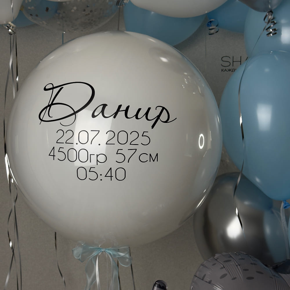 - Стеклянный белый шар с надписью: Имя, дата, рост, вес, время рождения