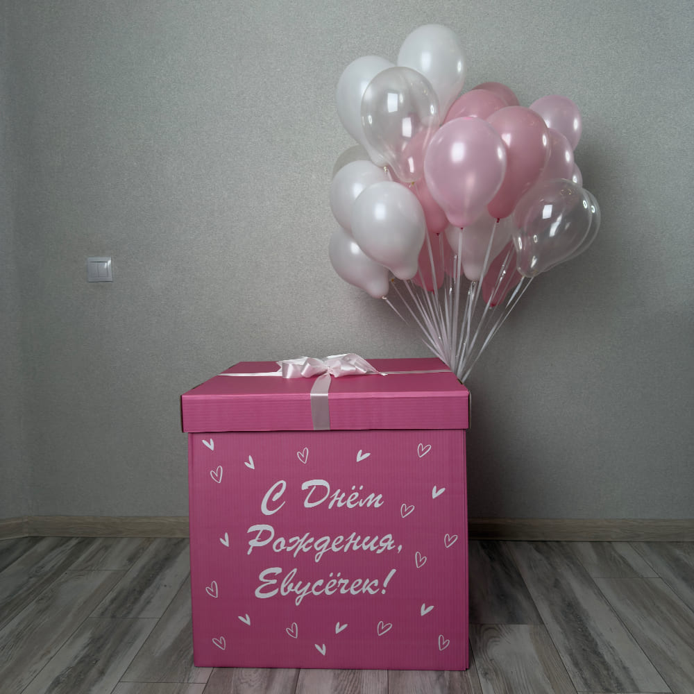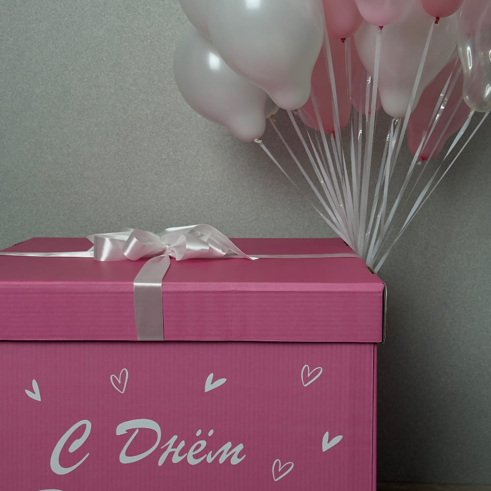 Цвет коробки и шаров, а также надпись — любые. Сделайте сюрприз, от которого захватит дух, для своей маленькой или взрослой принцессы.
