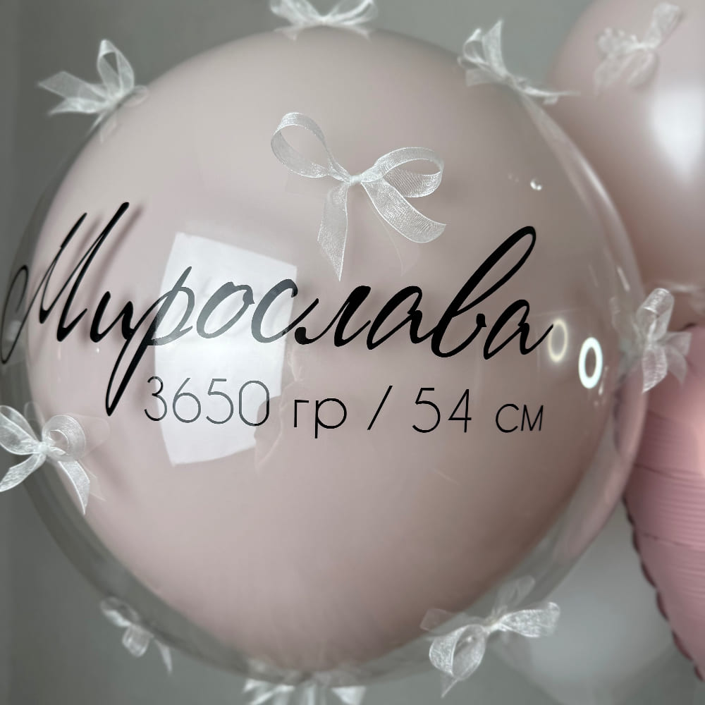 Первый праздничный аксессуар для вашей малышки! Огромный прозрачный шар, украшенный изящными бантиками и несущий на себе всю метрику новорожденной — это как драгоценная жемчужина, которая сохранит память о самом важном дне.
