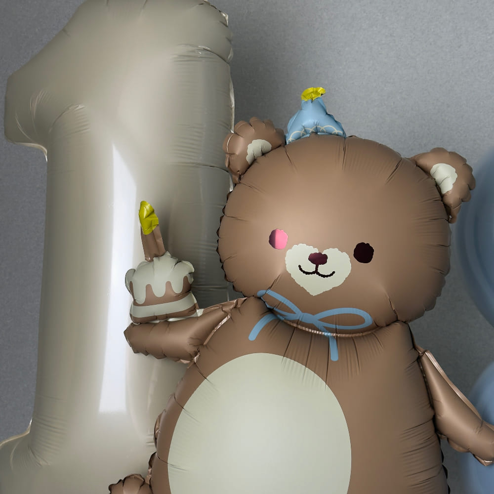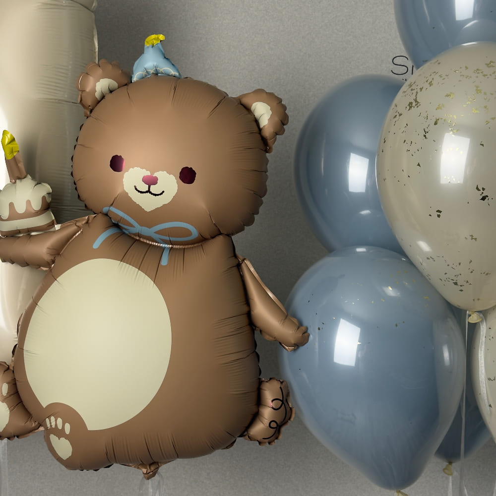 Первый в жизни юбилей — он должен быть сказочным. И лучший способ создать эту сказку — подарить малышу его первого большого друга. Шары для мальчика на 1 годик в компании очаровательного фольгированного Мишки — это идеальный рецепт трогательного и красивого праздника.