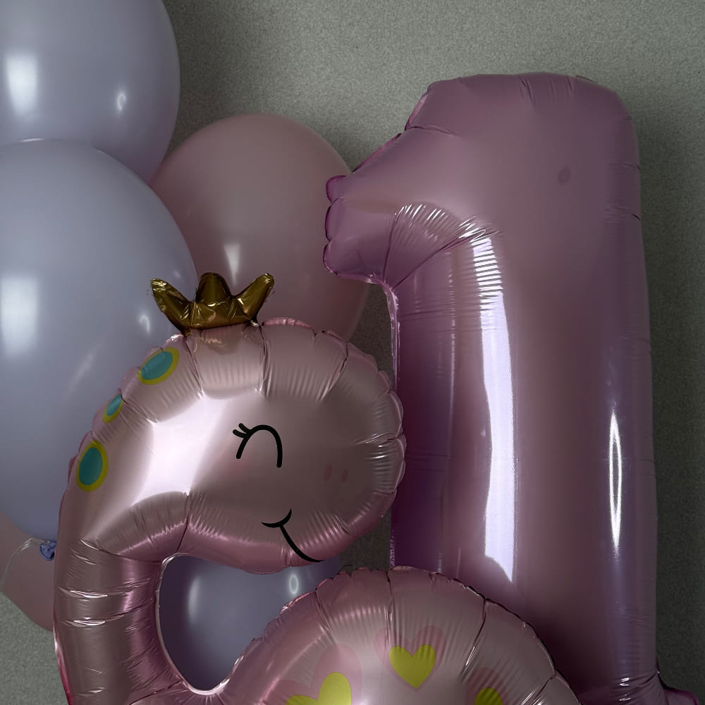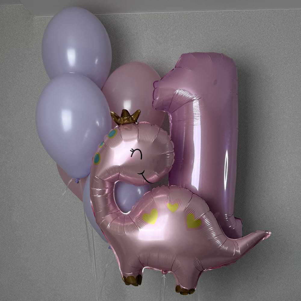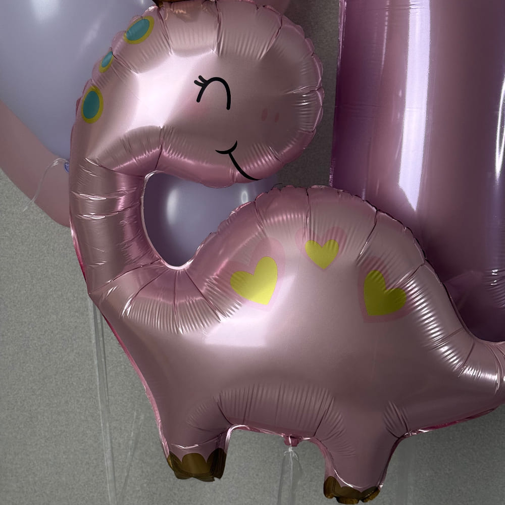 | Размер | Цифра 102 см, Круглые шарики 30 см, Фольгированный Динозаврик 94 см |
