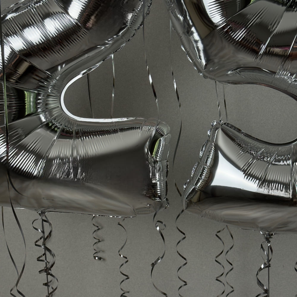 Почему это идеальный выбор? Потому что он универсален. Серебряно-белая гамма подходит для любого интерьера и выглядит стильно и современно. Оформление под потолком не мешает гостям, но визуально заполняет комнату праздником, создавая идеальный фон для фото. Все материалы премиального качества, с долгим сроком полета.