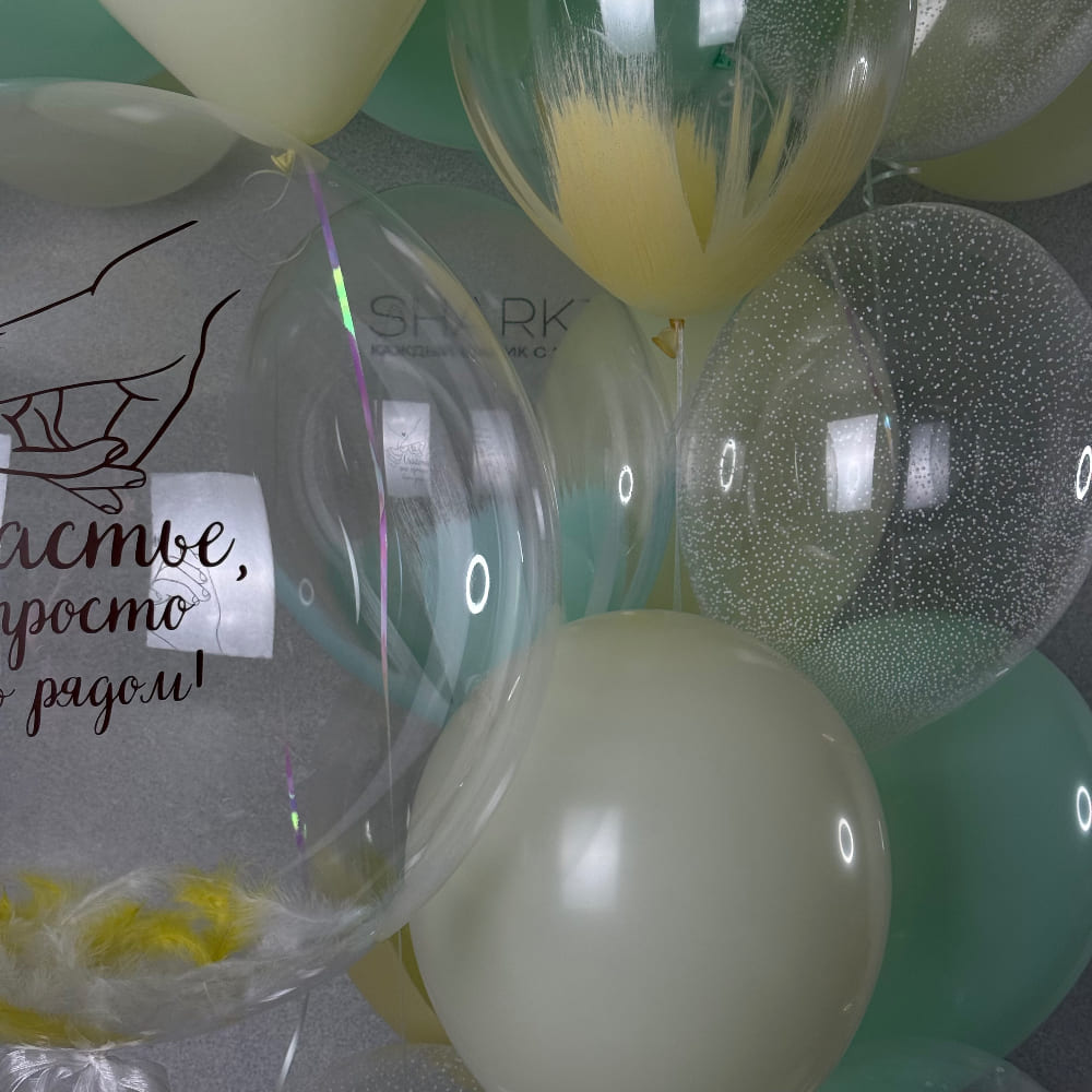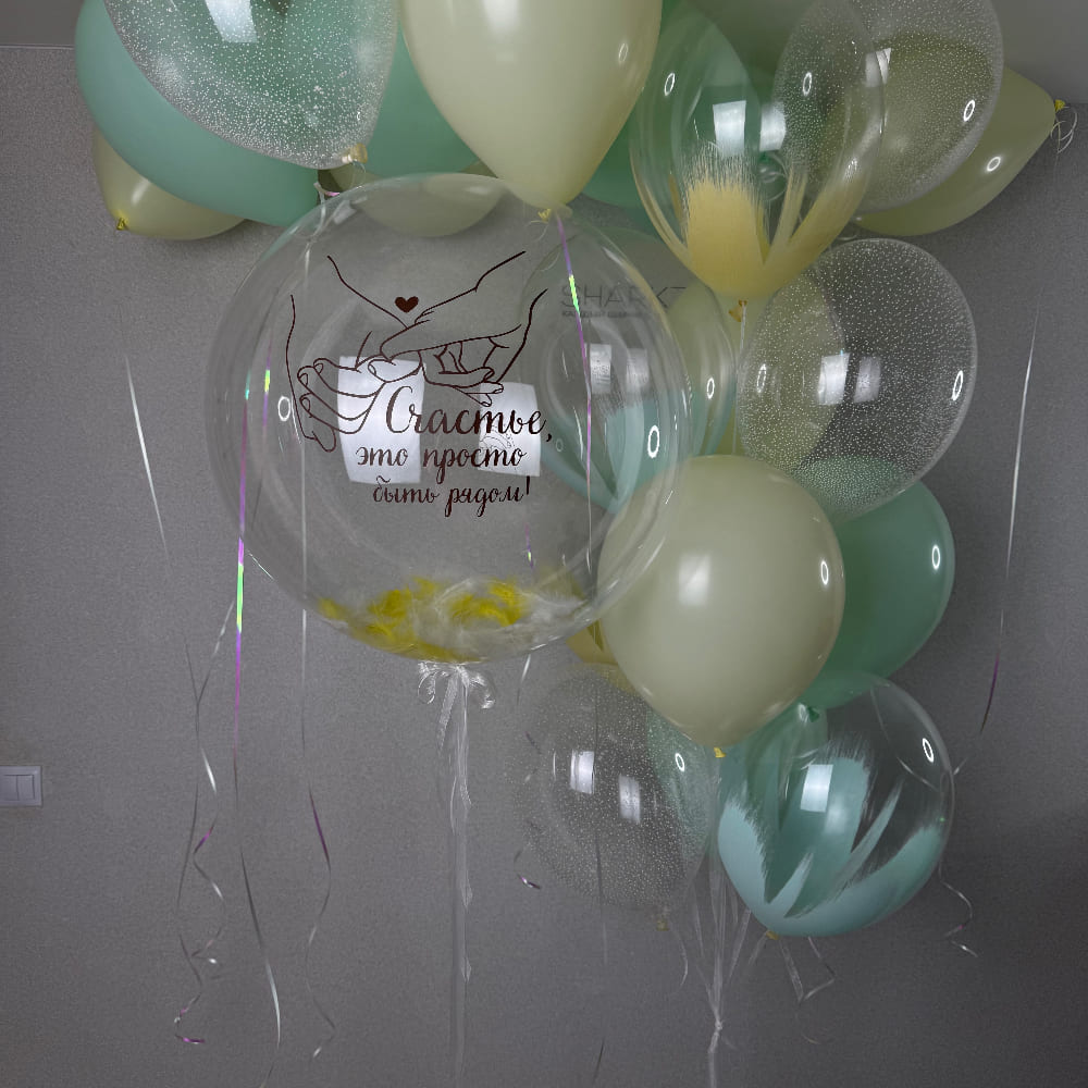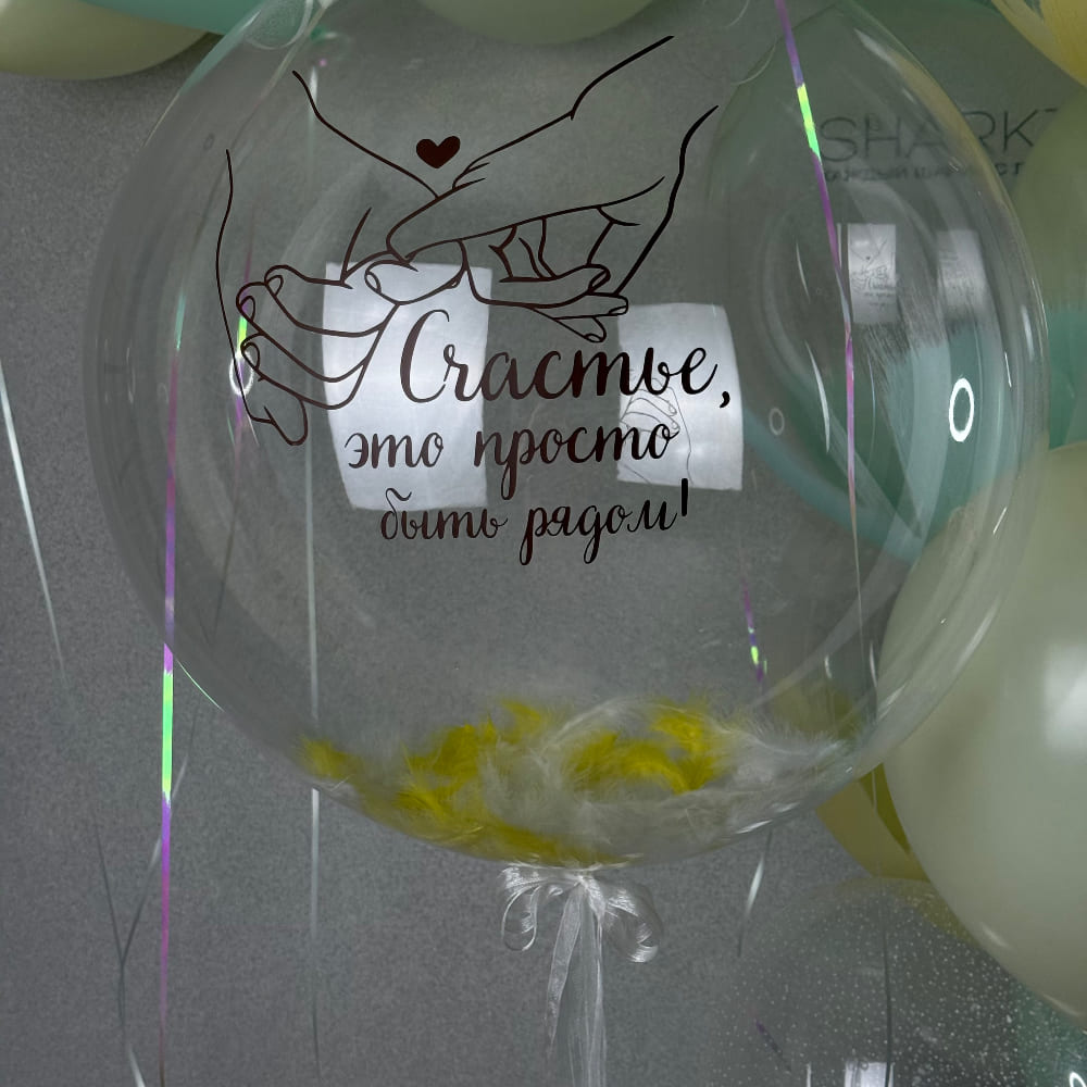 Вы можете персонализировать этот шедевр. Надпись на баблсе может быть любой — имя, важная дата, личная фраза. Цветовую гамму перьев и шаров легко изменить. Подарите своему самому дорогому человеку напоминание о счастье.