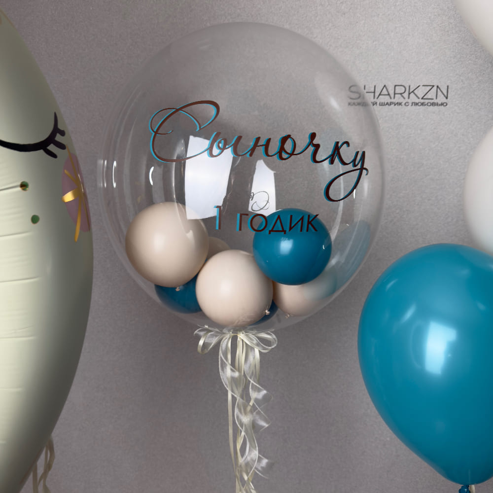 - Прозрачный Баблс с шариками и любой надписью