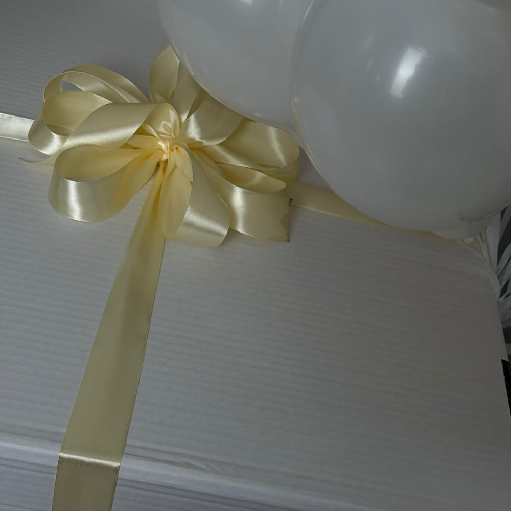 Внутри этой красивой белой коробки с золотой надписью «Теперь ты не Невеста, а Жена!» спрятаны 30 маленьких шариков и одно нежное белое сердце с надписью «Люблю и ценю!». Когда именинница откроет коробку, шары и сердце вылетят наружу, создав эффектный и очень личный сюрприз.