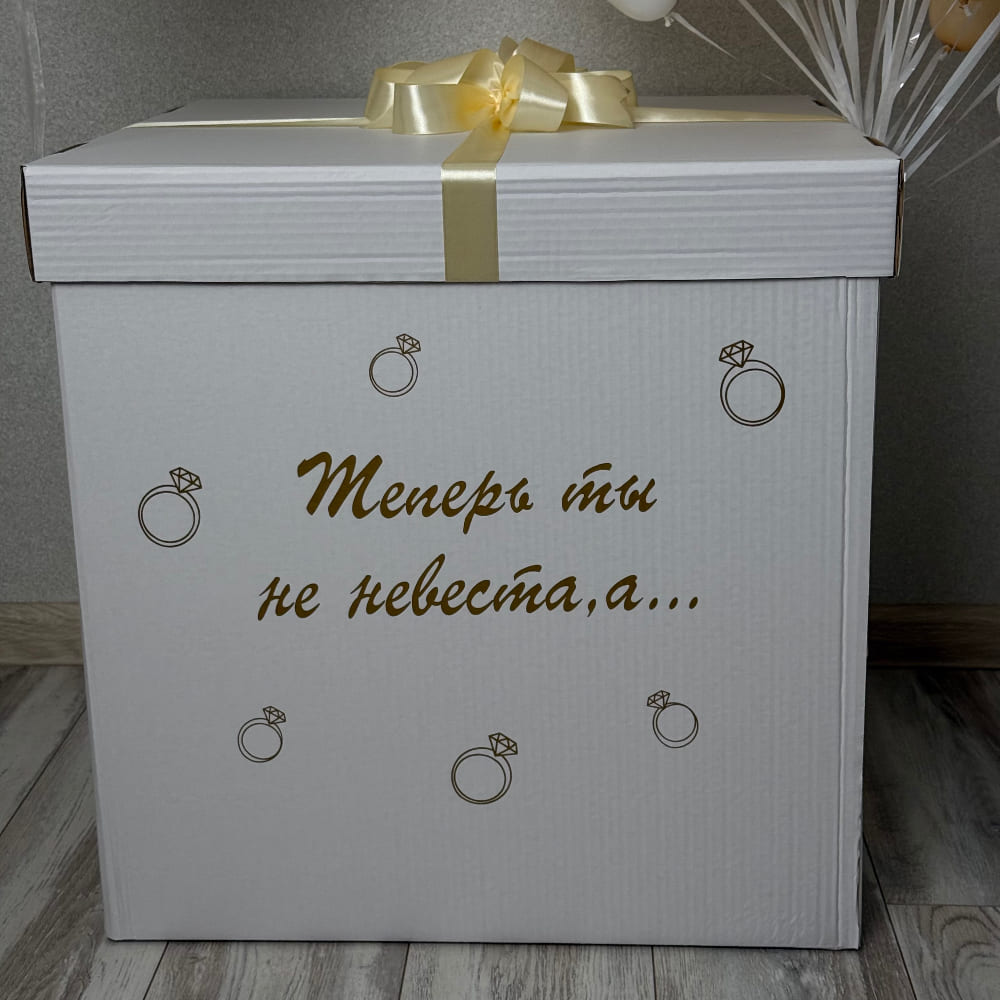 индивидуальная золотая надпись на коробку: Теперь ты не Невеста, а Жена!
